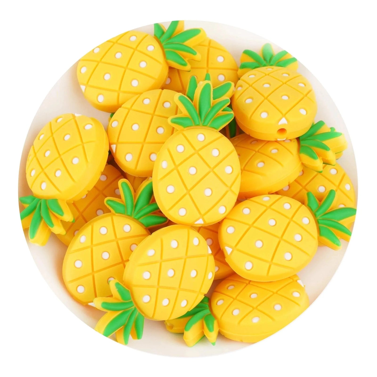Add a vibrant tropical flair to your craft projects with these Silicone Focal Bead Pineapple in yellow. These eye-catching beads offer a fun and fresh design that brings a bright pop of color to jewelry making, keychains, and decorative accents. Perfect for both hobbyists and sellers, they make your creations stand out with ease.